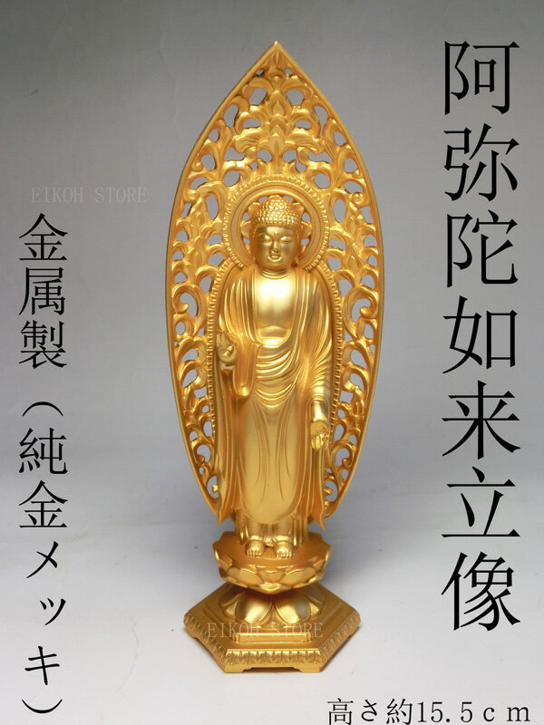 金色 阿弥陀如来 立像 (金属製 24K純金メッキ)高さ約15.7cm<仏像・風水置物・開運置物・幸運置物> 阿弥陀仏立像 八体仏 八大仏 守り本尊 守護本尊